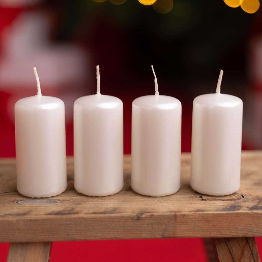 Adventné sviečky 6,5cm BIELE PERLEŤOVÉ 4ks