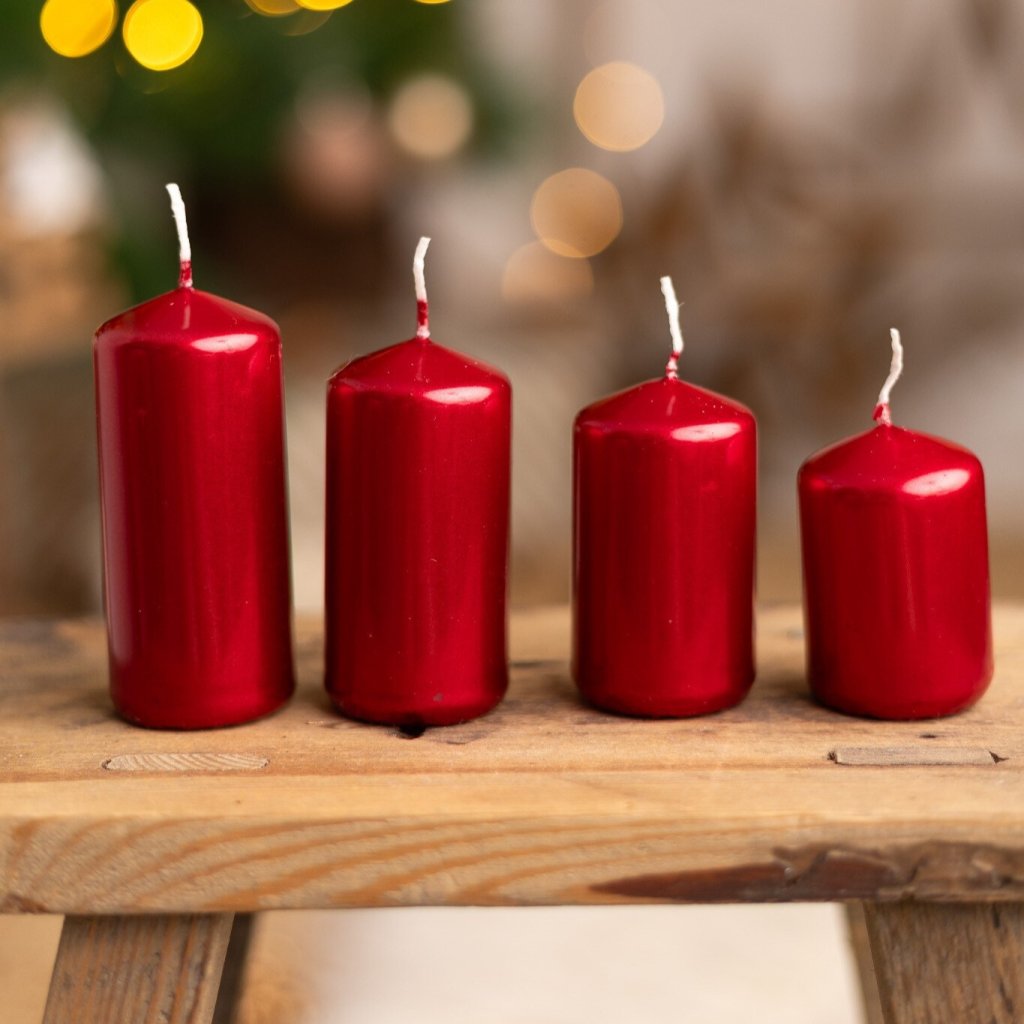 Adventné sviečky postupné 4ks ČERVENÉ PERLEŤOVÉ od 8,5cm