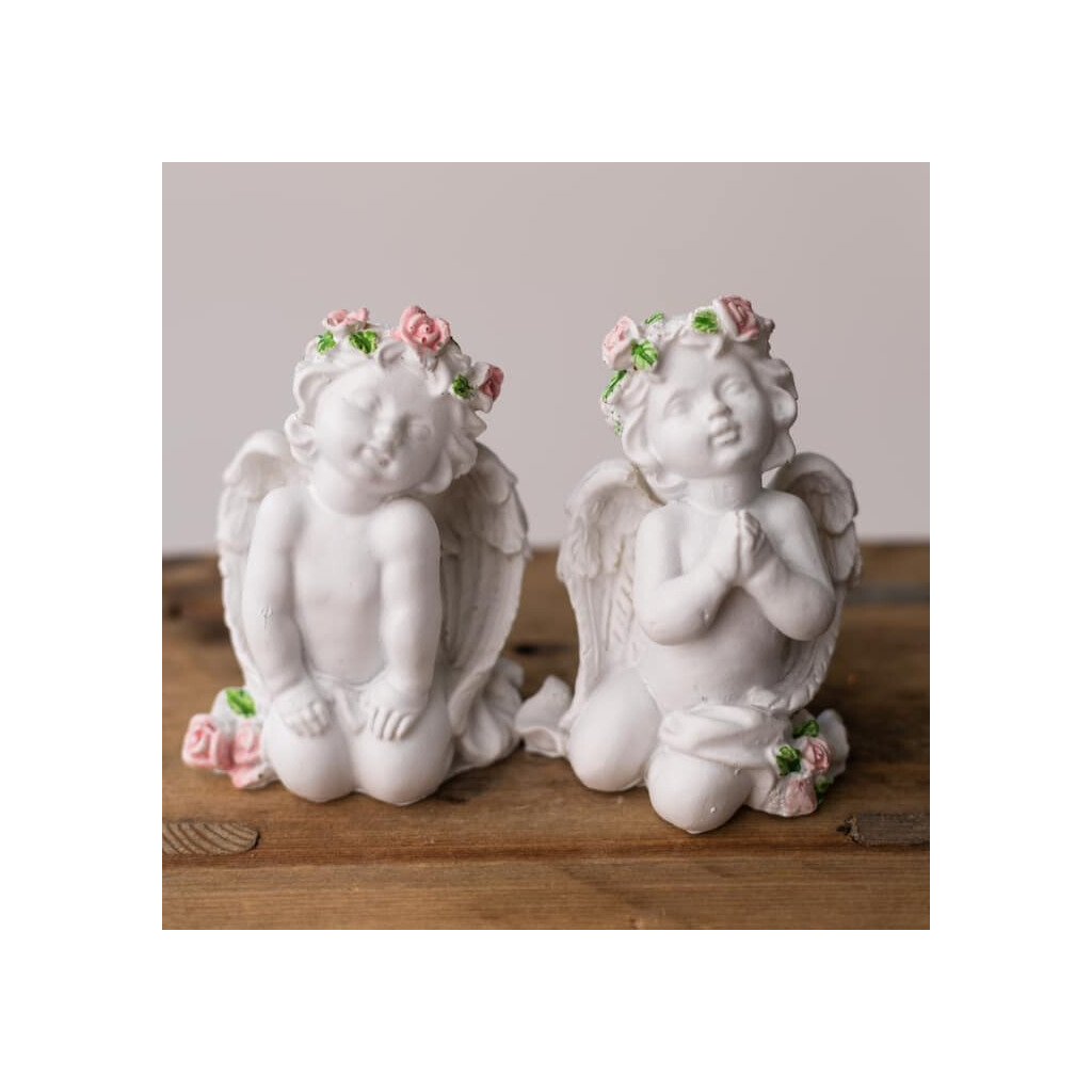 Biele sediace anjeliky s ružovými čelenkami 10cm