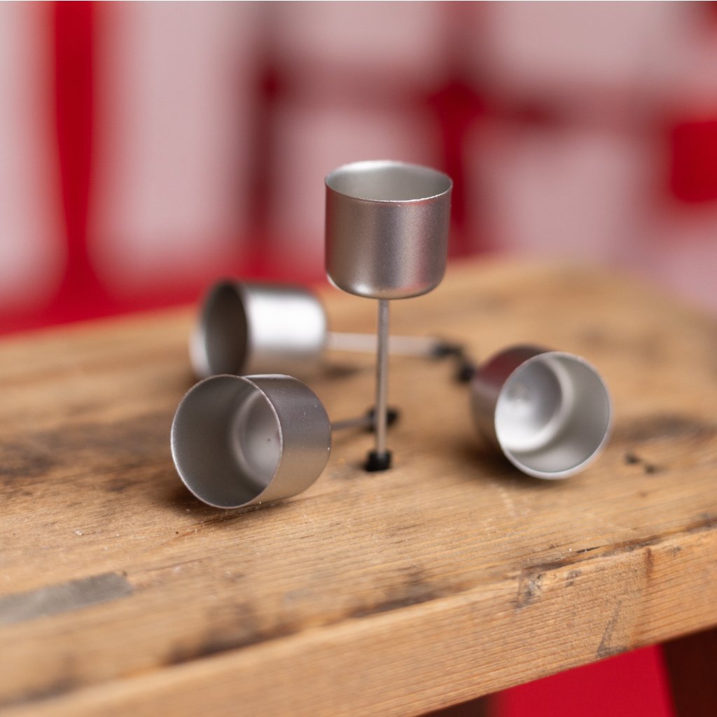 Bodce na čajové kónické sviečky MATNÉ STRIEBORNÉ 6cm a priemer 2,2cm. Balenie obsahuje 4ks.