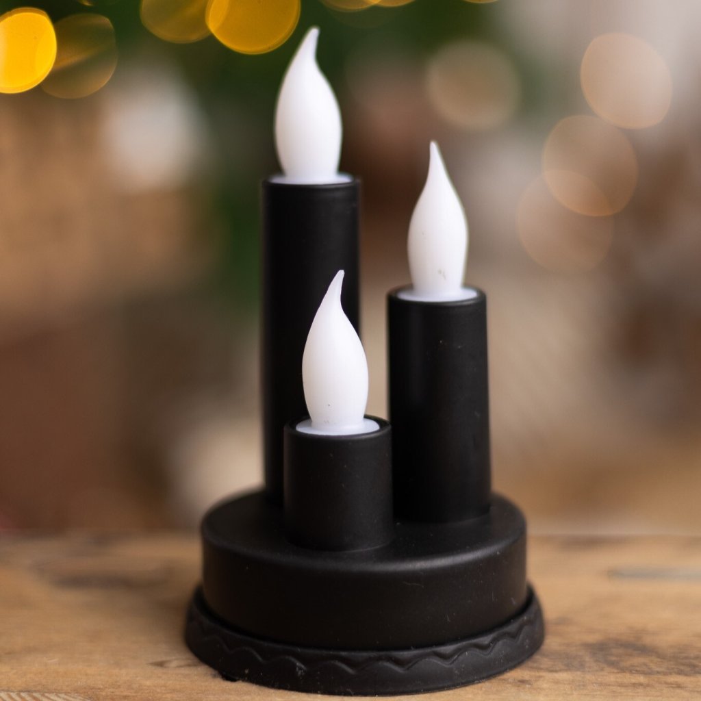 Diodový kahanec 3 sviečky ČIERNY 14cm