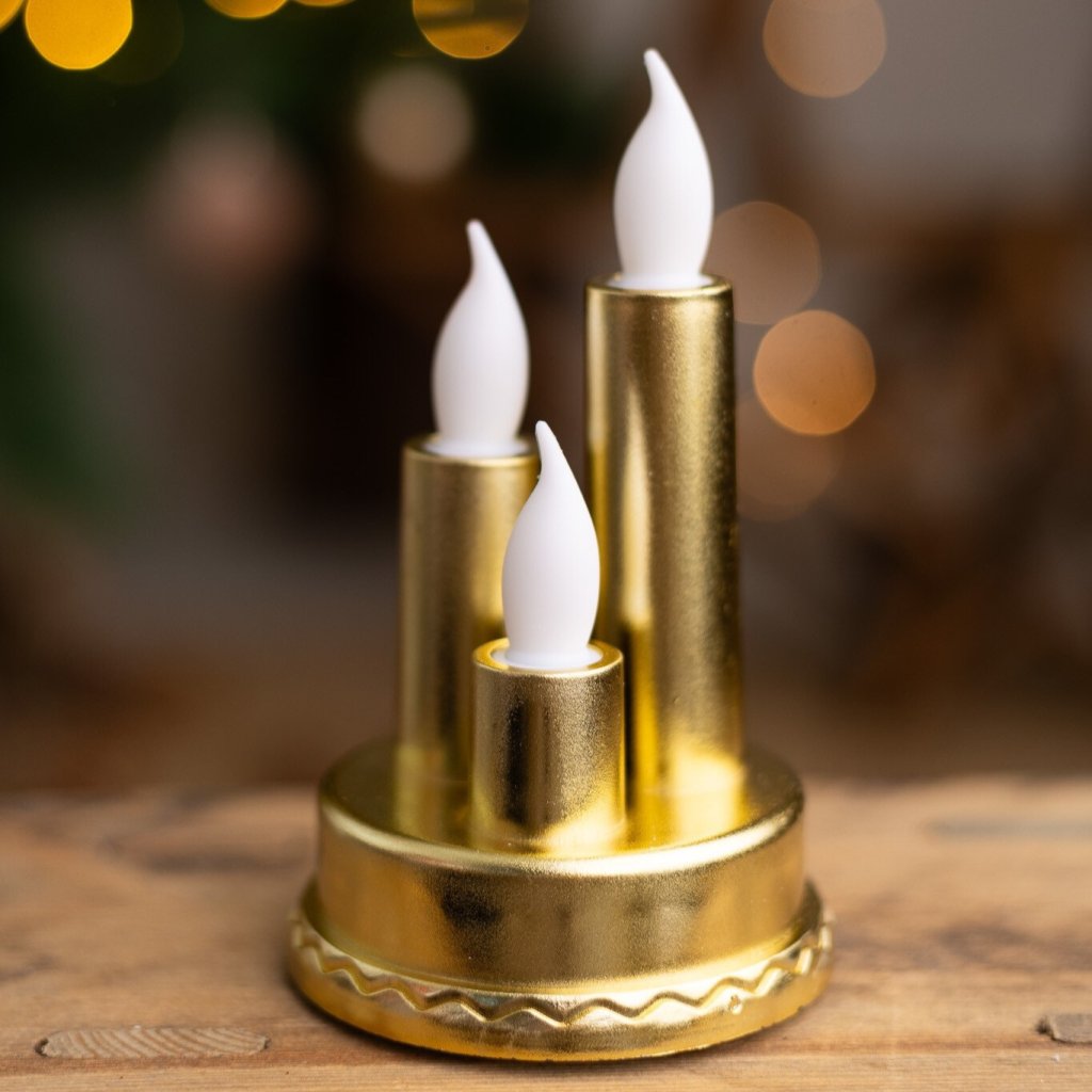 Diodový kahanec 3 sviečky ZLATÝ 14cm
