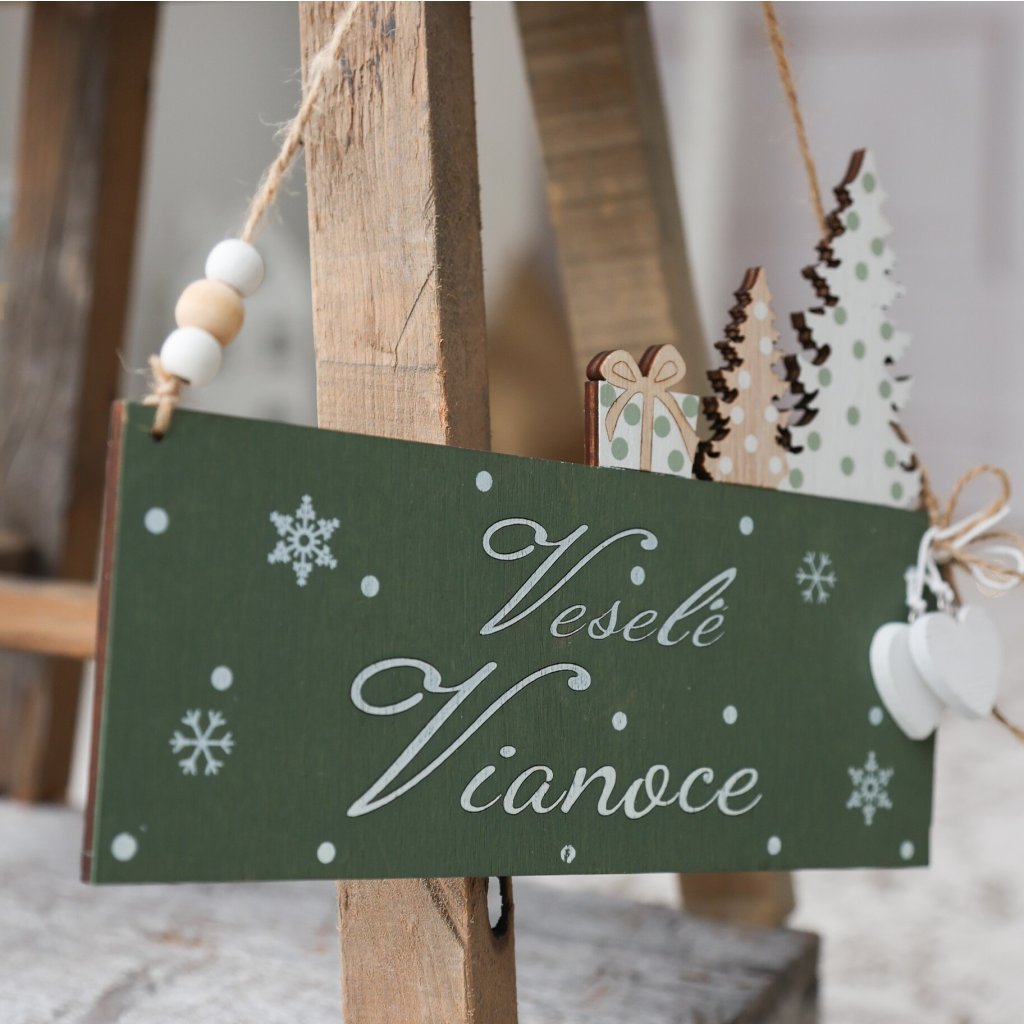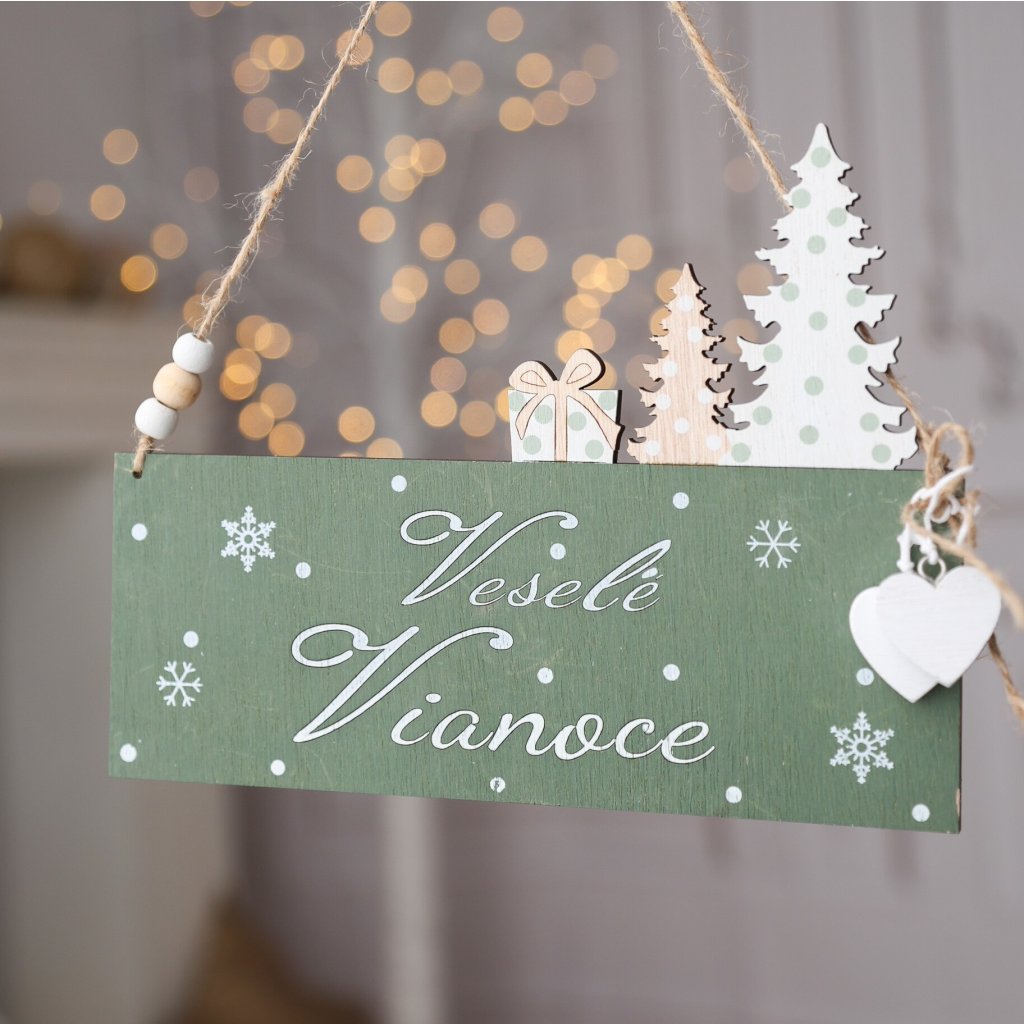 Drevená tabuľka s nápisom Veselé Vianoce 22x17cm. Výborná dekorácia na doplnenie vianočnej výzdoby.