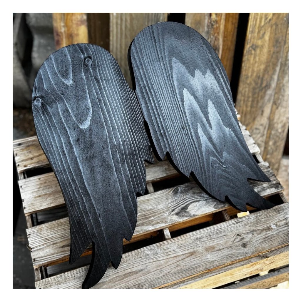 Drevené anjelské krídla na podstavci ČIERNE 41x40cm