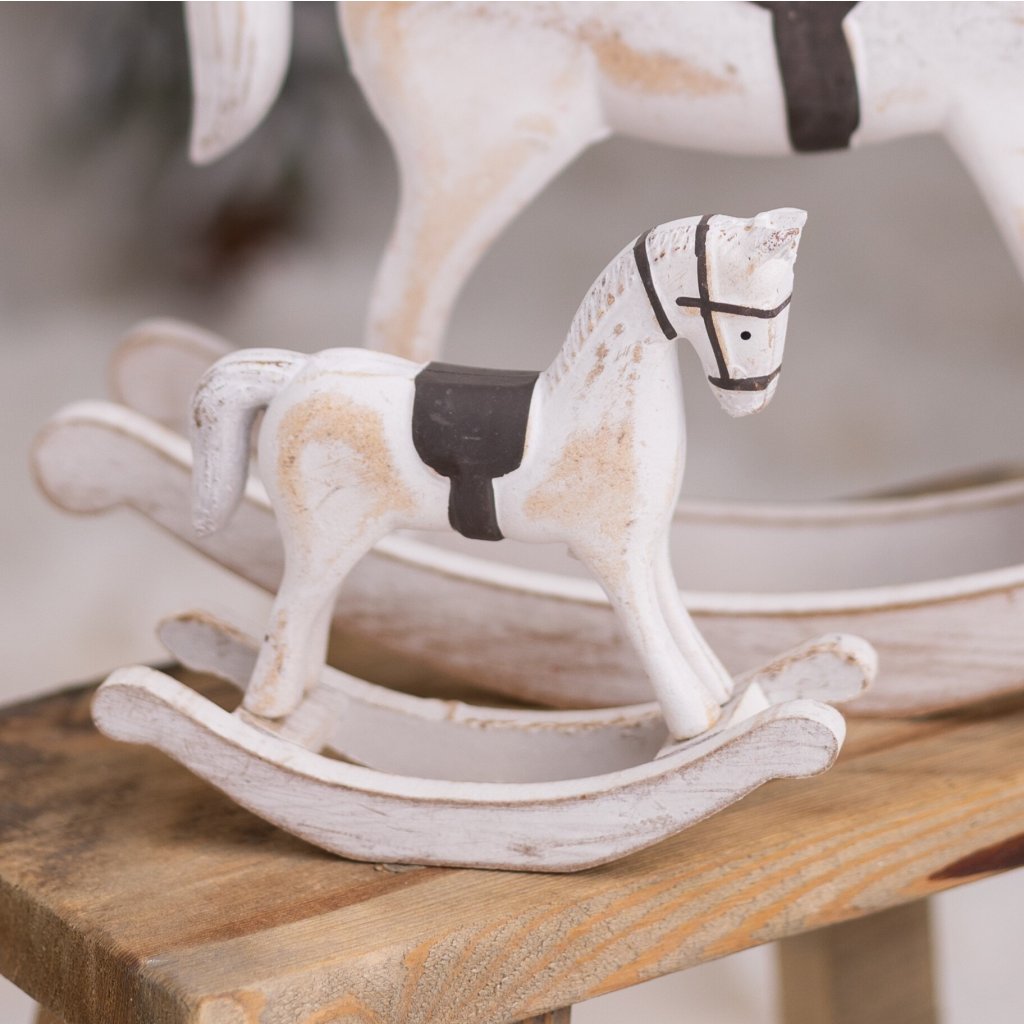 Nádherne vypracovaný, kvalitný, drevený hojdací koník s hnedým sedlom. Vhodný do dekorácií a aj na poličku.