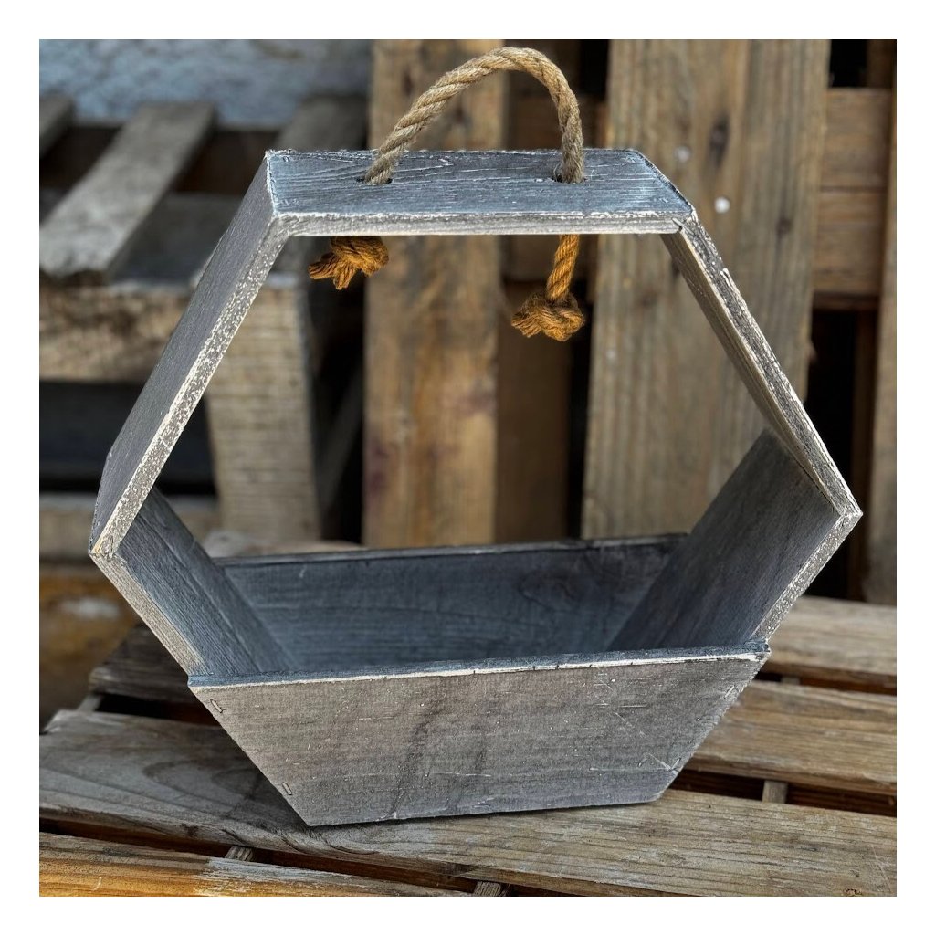 Drevený obal päťuholník so špagátom ŠEDÝ 29cm
