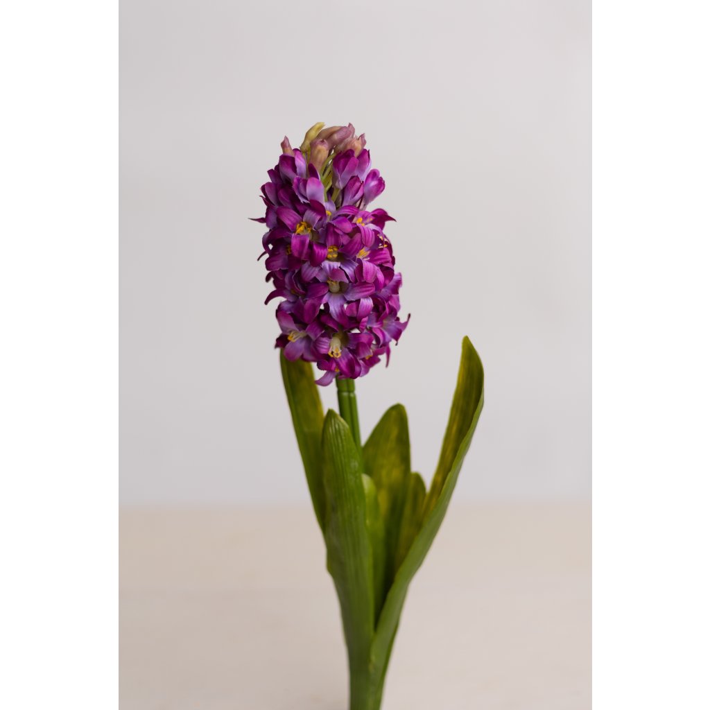 Kvalitný umelý hyacint vyrobený z pružného gumového materiálu s realistickým vzhľadom. Detailne spracované kvety pôsobia prirodzene a sú príjemné na dotyk. Ideálny na dekoráciu interiéru aj exteriéru, do aranžmánov, kvetináčov alebo váz. Bezúdržbový, odolný a dlhotrvajúci.