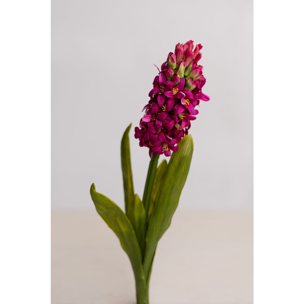 Kvalitný umelý hyacint vyrobený z pružného gumového materiálu s realistickým vzhľadom. Detailne spracované kvety pôsobia prirodzene a sú príjemné na dotyk. Ideálny na dekoráciu interiéru aj exteriéru, do aranžmánov, kvetináčov alebo váz. Bezúdržbový, odolný a dlhotrvajúci.