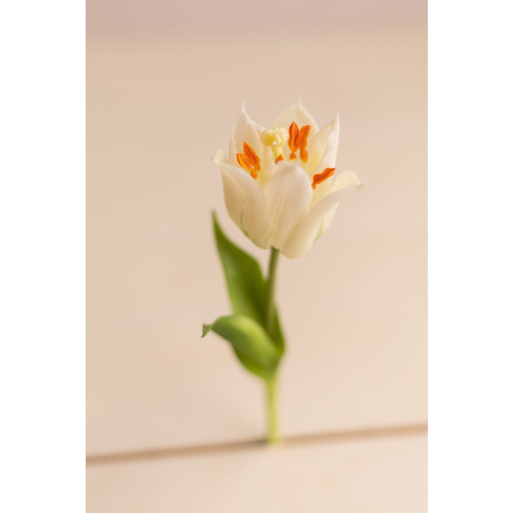 Vyrobený z kvalitnej gumy, vďaka ktorej je tulipán pružný, odolný a dlhodobo si zachováva svoj luxusný vzhľad. Je ideálny ako samostatná dekorácia do vázy, súčasť kvetinových aranžmánov, vencov alebo sezónnych dekorácií.