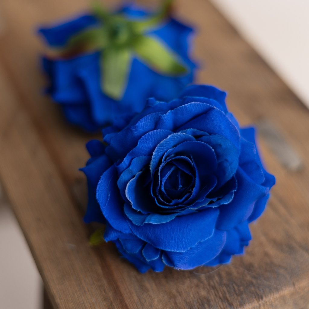 Hlavička ruža rozkvitnutá MODRÁ 8cm