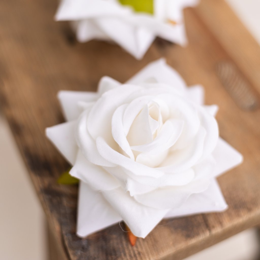Hlavička zamatová ruža BIELA 9cm