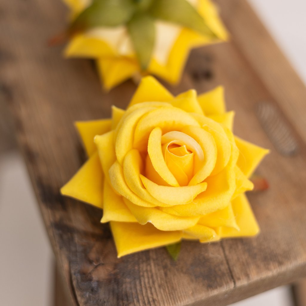 Hlavička zamatová ruža ŽLTÁ 9cm