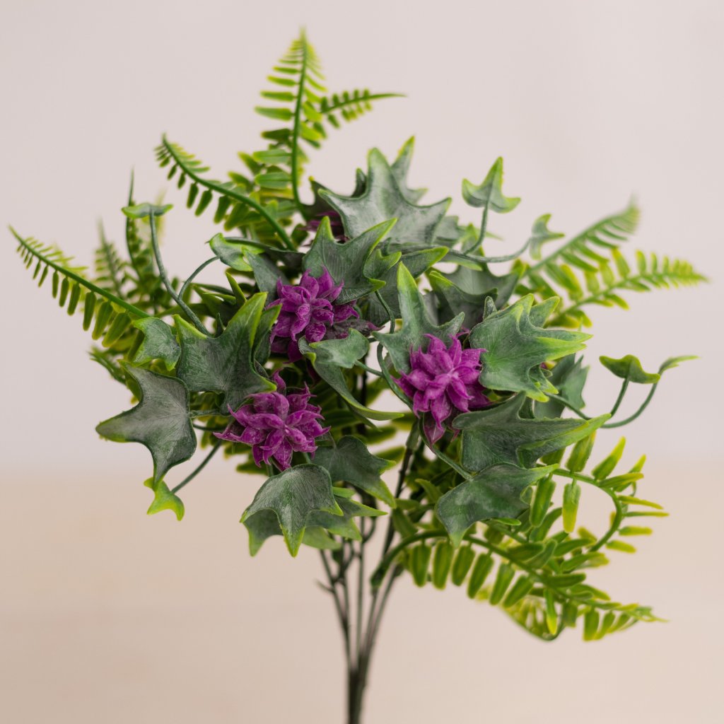 Hustá kytica gumený Brečtan s ružovým kvietkom 30cm