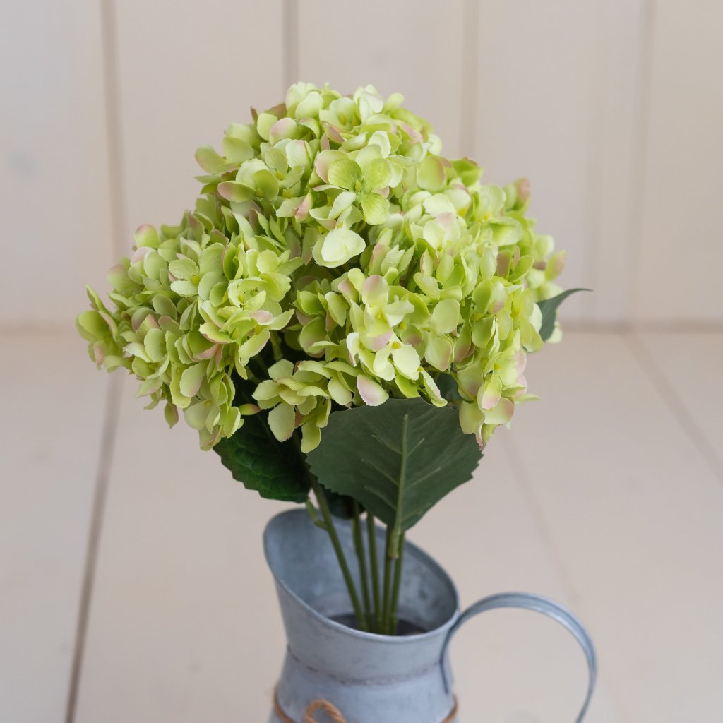 Hustá kytica hortenzia drobné kvietky ZELENÁ 46cm. Jemné látkové lupene.