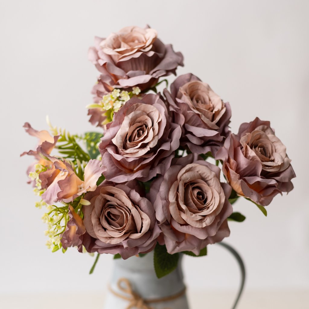 Hustá kytica rozkvitnutá ruža s prízdobami HNEDÁ 45cm . TOP KVALITA!