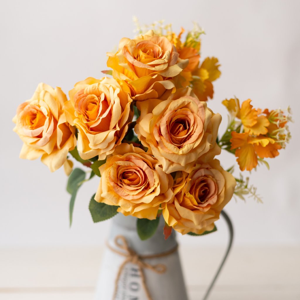 Hustá kytica rozkvitnutá ruža s prízdobami SVETLÁ ORANŽOVÁ 45cm. TOP KVALITA.