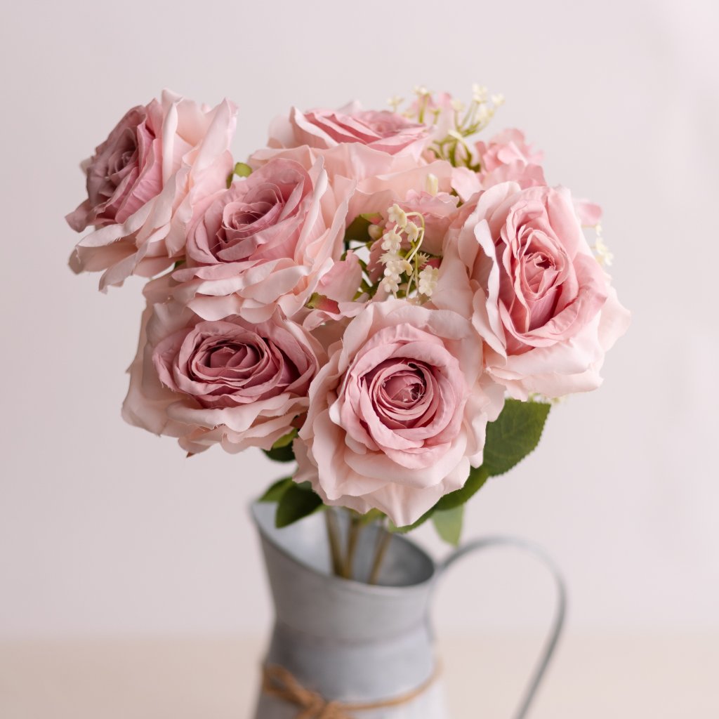 Elegantná a nadčasová kytica z jemných látkových ruží, ktorá očarí na prvý pohľad. Ruže majú realisticky tvarované lupene v nežných odtieňoch, doplnené o decentné drobné kvietky, ktoré dodávajú celej kytici ľahkosť a romantický vzhľad. Vysokokvalitné spracovanie zabezpečuje dlhú životnosť a stále krásny vzhľad bez potreby starostlivosti.