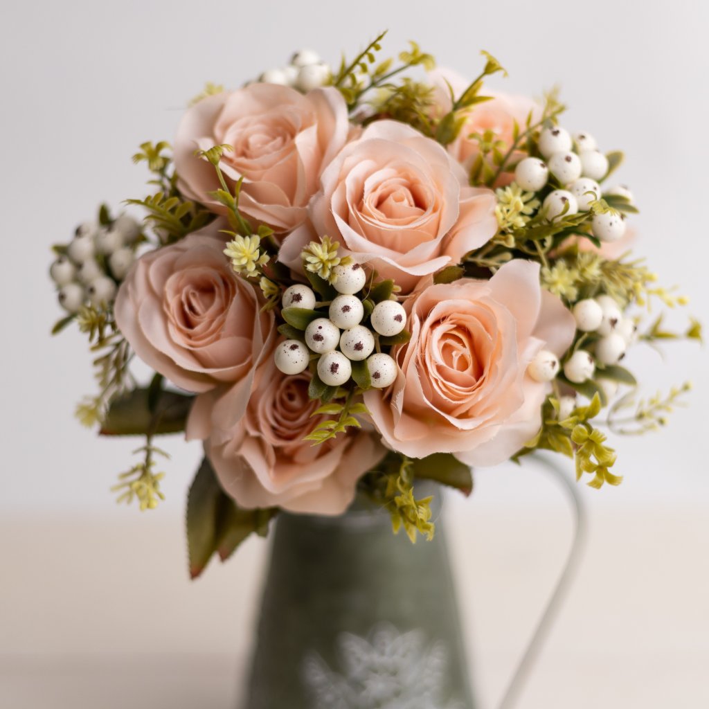 Hustá kytica Ruža s bobuľkami ČAJOVÁ 50cm