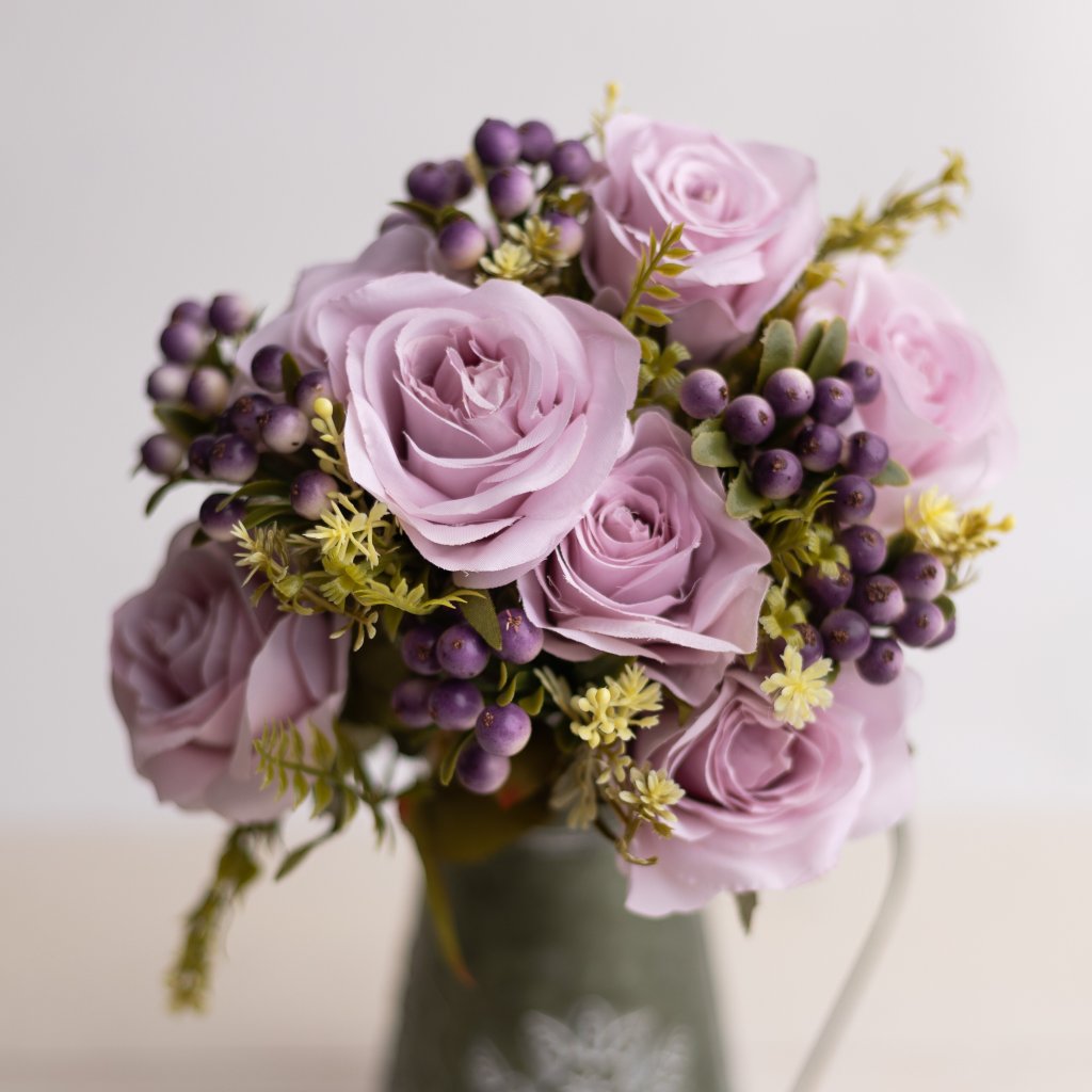 Hustá kytica Ruža s bobuľkami FIALOVÁ 50cm