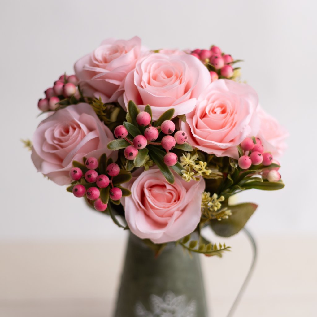Hustá kytica Ruža s bobuľkami RUŽOVÁ 50cm