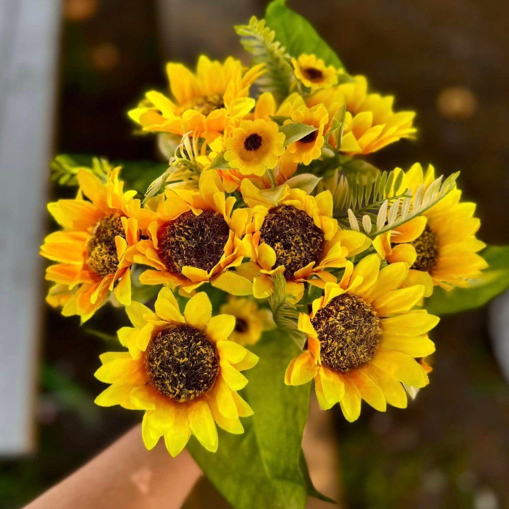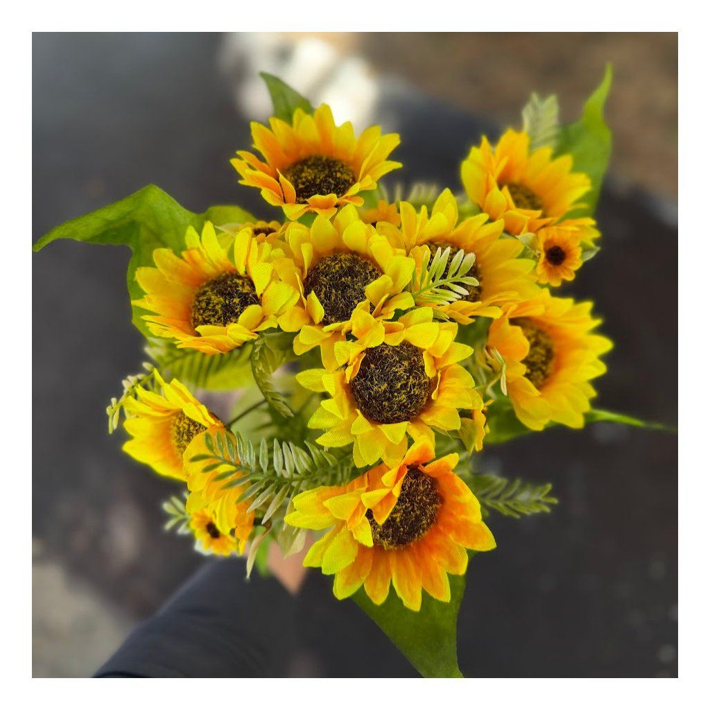 Hustá kytica Slnečnica aj s mini kvietkami 40cm, 9 stopiek. Priemer hlavičky 6-7cm plus mini kvietky.