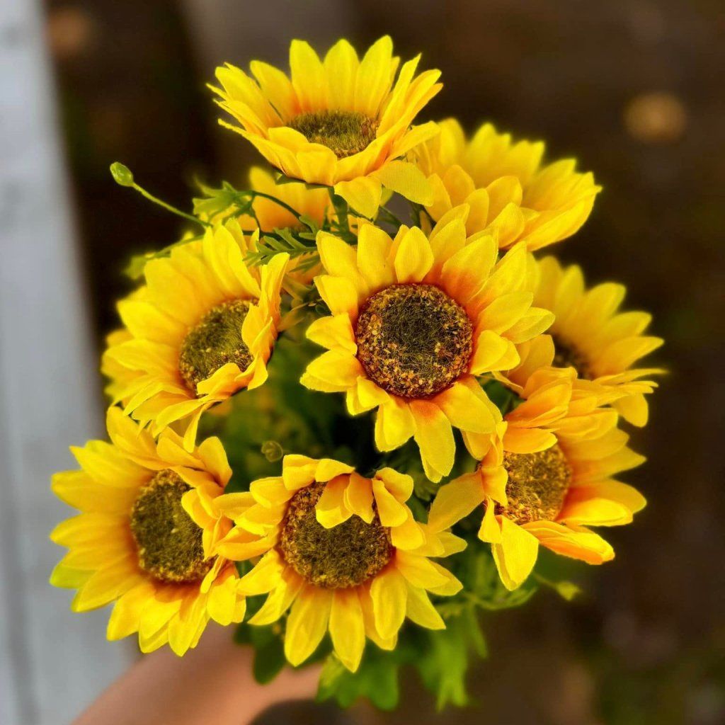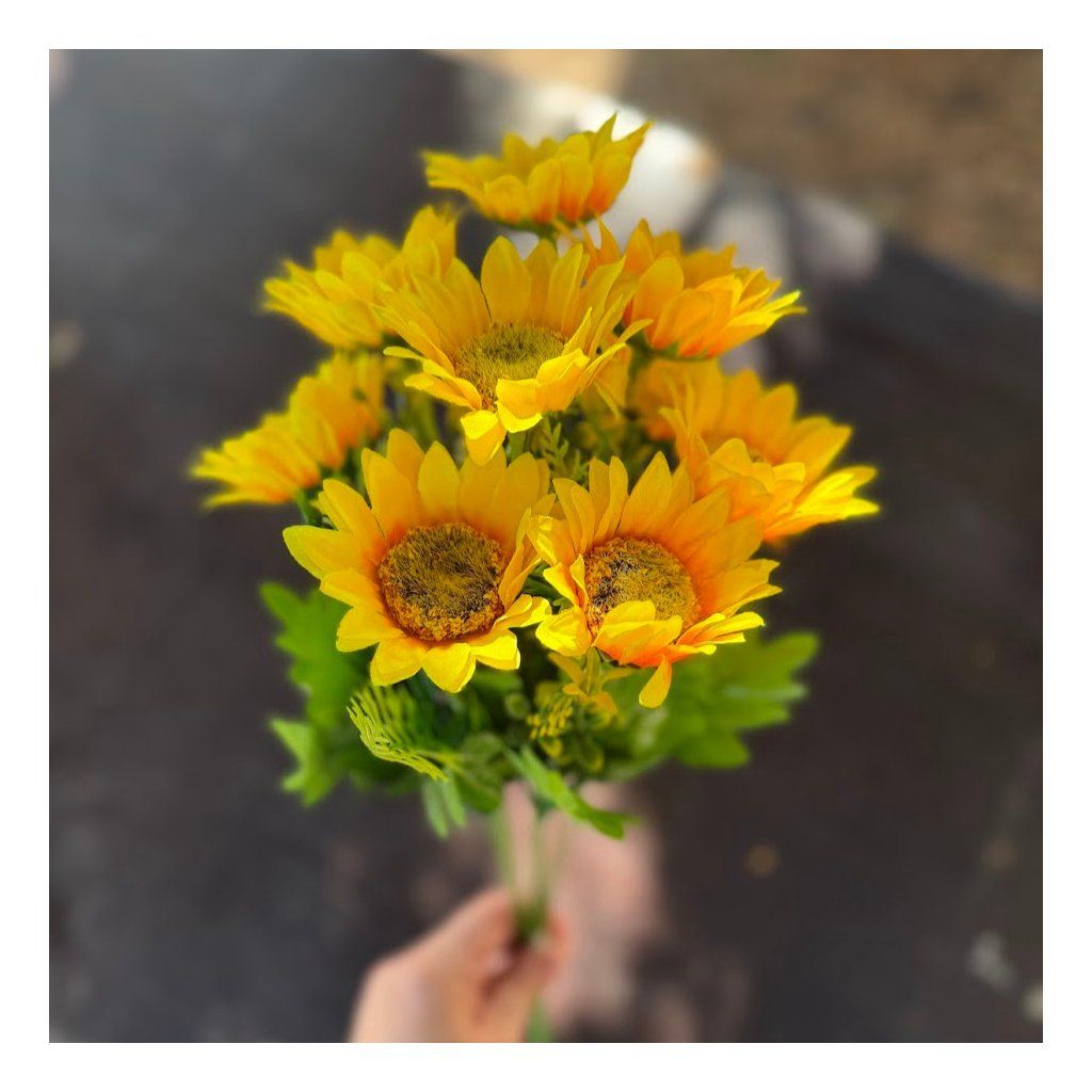 Hustá kytica Slnečnica 45cm a 10 stopiek. Priemer hlavičky 6-7cm plus mini kvietky.