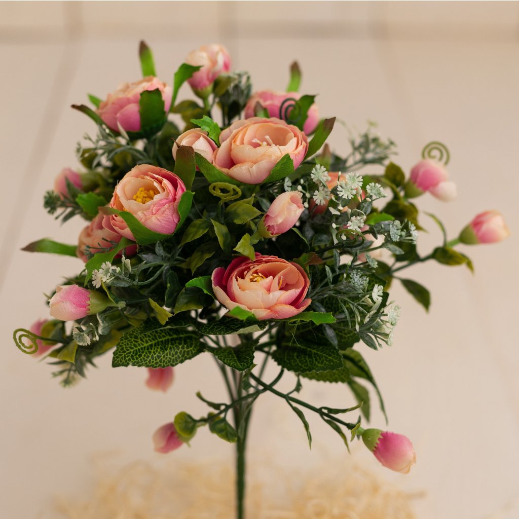 Hustá kytička ranunculus RUŽOVO MARHUĽOVÁ. Celoročné aranžovanie.