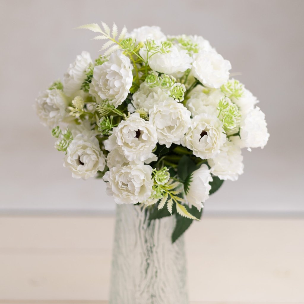 Hustá okrúhla kytica Pivonky BIELA 40cm