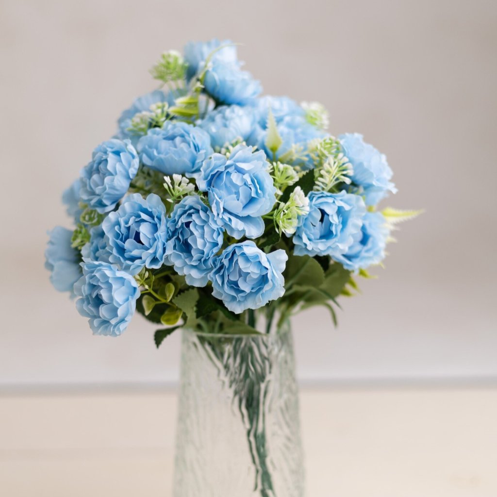 Hustá okrúhla kytica Pivonky MODRÁ 40cm