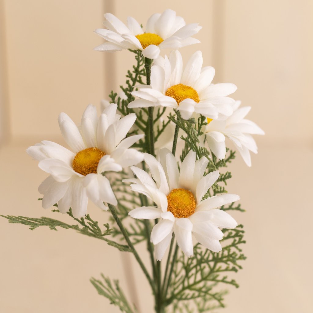 Kvalitná umelá margarétka s výškou 55 cm zaujme precízne spracovanými, realistickými kvetmi, ktoré na prvý pohľad pôsobia ako živé. Jemné biele lupienky so žltým stredom v kombinácii s prirodzene tvarovanou zeleňou vytvárajú svieži a nadčasový vzhľad.