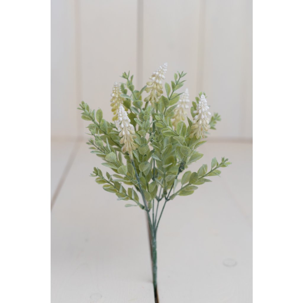 Hustá, jemne poprášená kytička modrica s bielymi kvietkami, bohatý a vzdušný vzhľad. Celková výška 36 cm je ideálna rustikálnych a vintage aranžmánov. Kytička sa hodí do moderných aj rustikálnych interiérov, kde dodá pocit sviežosti, ľahkosti a prírodnej harmónie.