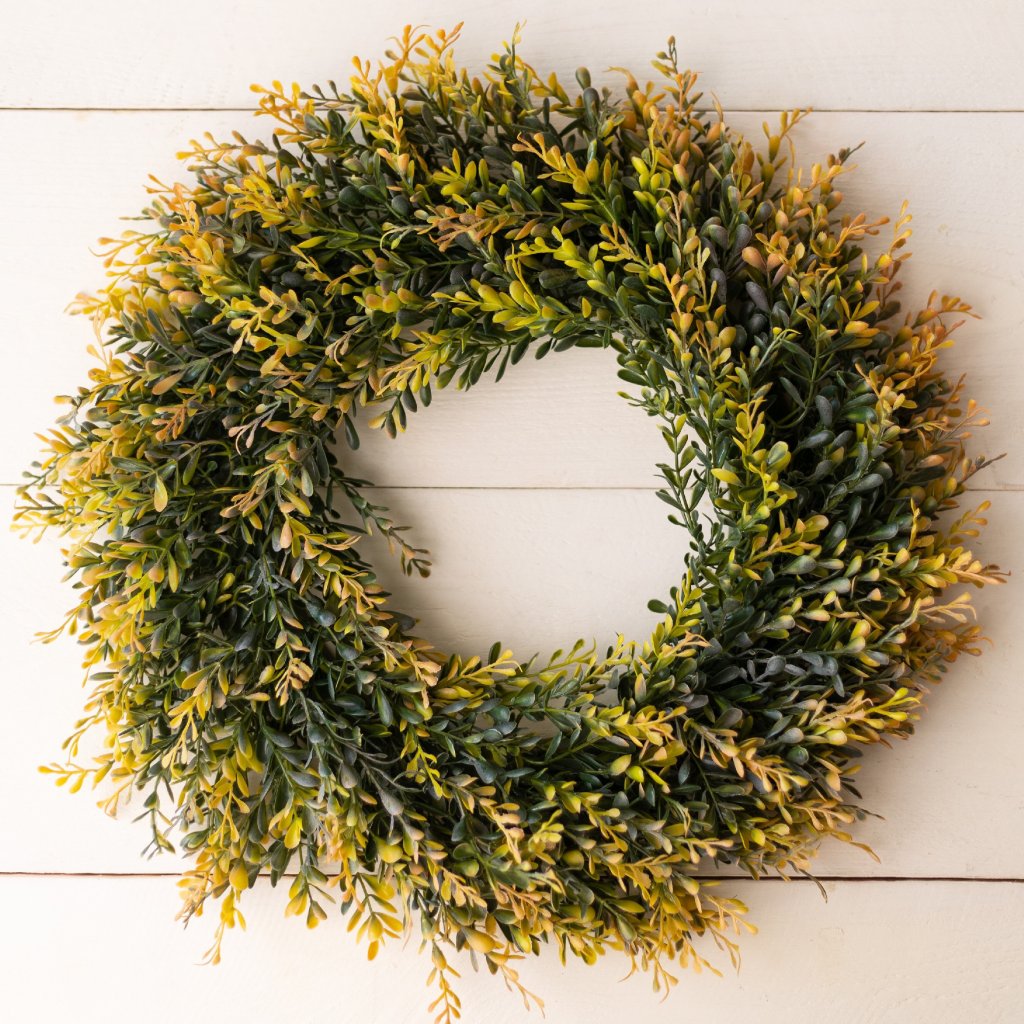 Jesenný veniec s malými lístočkami oranžový. Priemer 43cm.