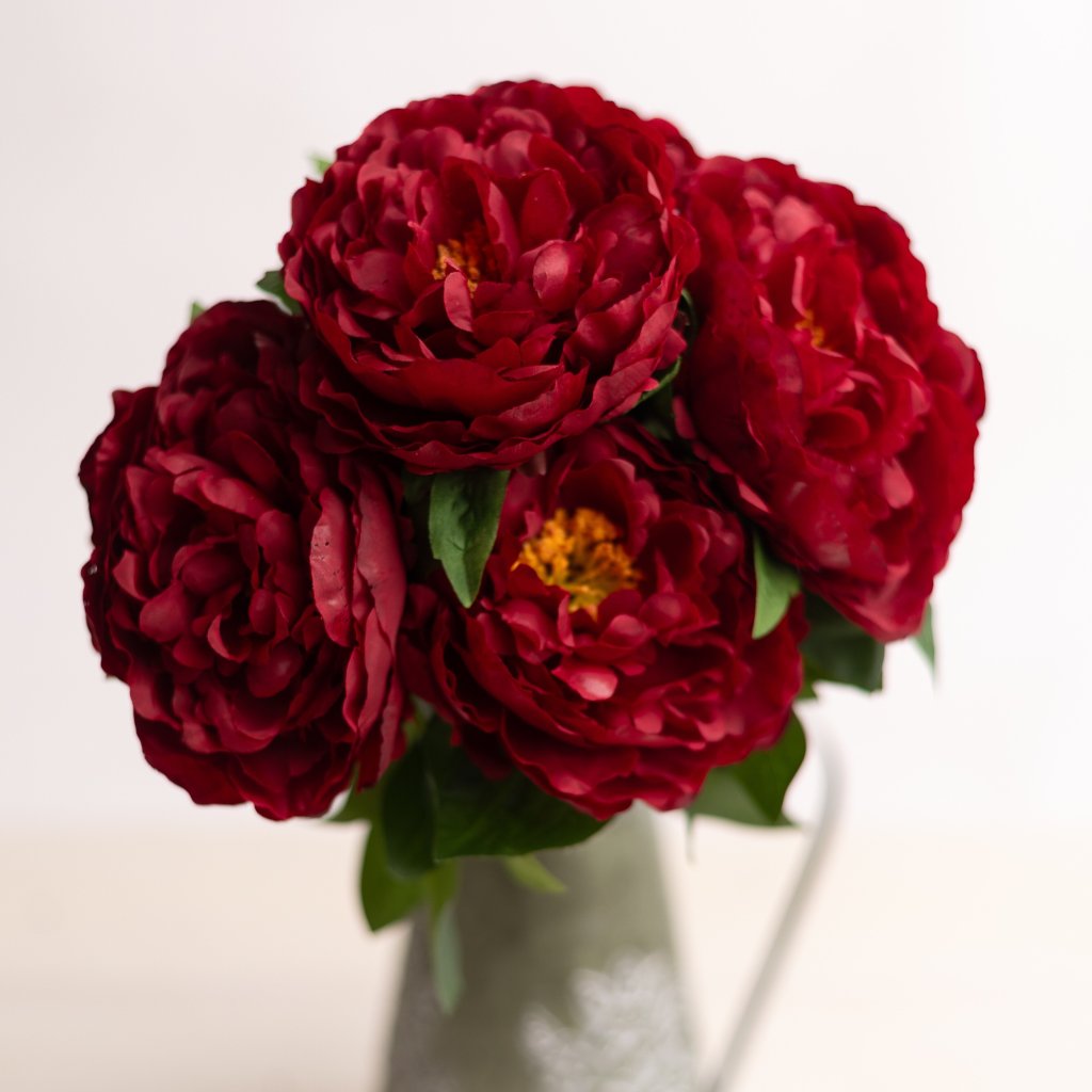 Hustá kytica Pivonky ČERVENÁ 47cm a 5 stopiek. Priemer hlaviočky 12-13cm.