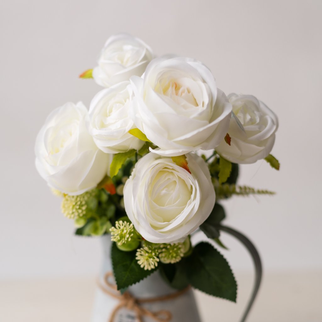 Kytica ruží BIELA 43cm, 7 stopiek. Hlavičky sú rôznych veľkostí.