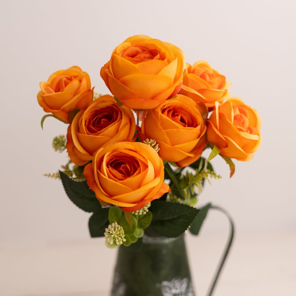 Kytica ruží ORANŽOVÁ 43cm, 7 stopiek. Hlavičky sú rôznych veľkostí.