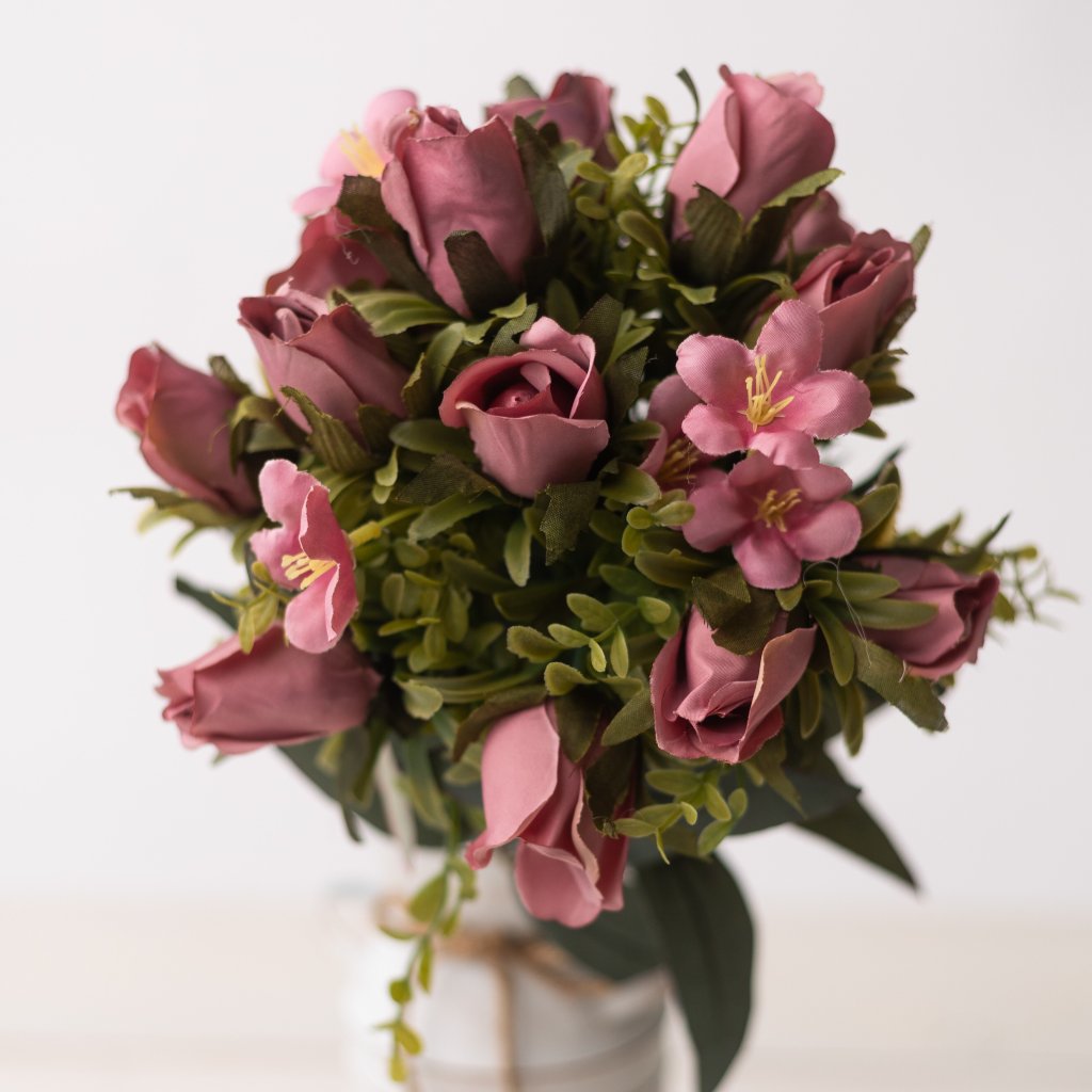 Kytica ruží v puku s lístočkami STARO RUŽOVÁ 45cm