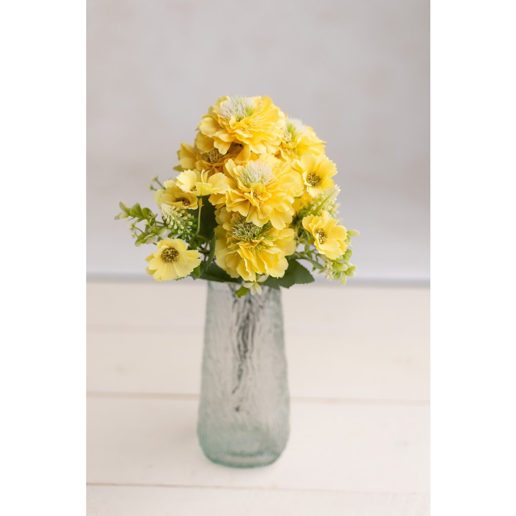 Táto nádherná umelá kytica Scabiosa s výškou 45 cm je ideálnym doplnkom pre každý interiér, ktorý túži po jemnej elegancii a prirodzenej kráse. Kytica obsahuje 9 bohato zdobených stopiek s detailne prepracovanými kvietkami v jemných žltých a bielych odtieňoch, doplnených sviežou zelenou. Vďaka precíznemu spracovaniu pôsobia kvety mimoriadne realisticky – na prvý pohľad ich len ťažko rozoznáte od živých.