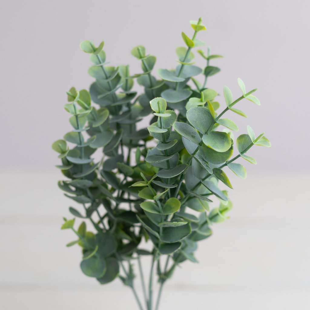 Dekoratívny eukalyptus v jemnej zeleno-sivej farebnosti pôsobí moderne a nadčasovo. Päť bohato olistených stopiek s typickými okrúhlymi lístkami vytvára prirodzený a harmonický vzhľad. Vďaka výške 34 cm je ideálny do celoročných aranžmánov, vencov, ikebán aj interiérových dekorácií. Skvelo sa kombinuje s kvetmi aj inou zeleňou a dodá aranžmánom sviežosť, eleganciu a jemný prírodný akcent.
