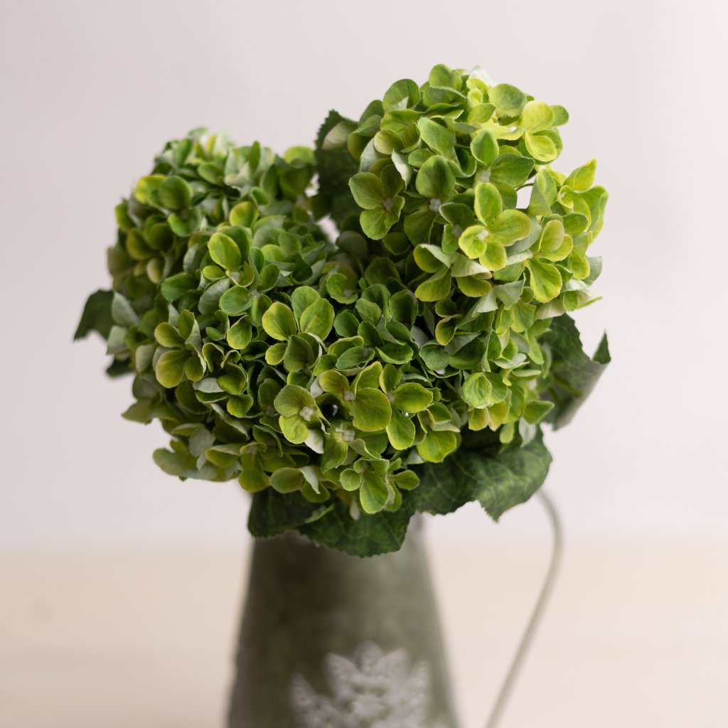 Dekoratívna kytica hortenzie s výškou 42 cm očarí bohatými súkvetiami z drobných kvietkov, ktoré pôsobia mimoriadne prirodzene. Vďaka kvalitnému materiálu, detailnému spracovaniu a jemným farebným prechodom vyzerá ako živá a je na nerozoznanie od čerstvej hortenzie.