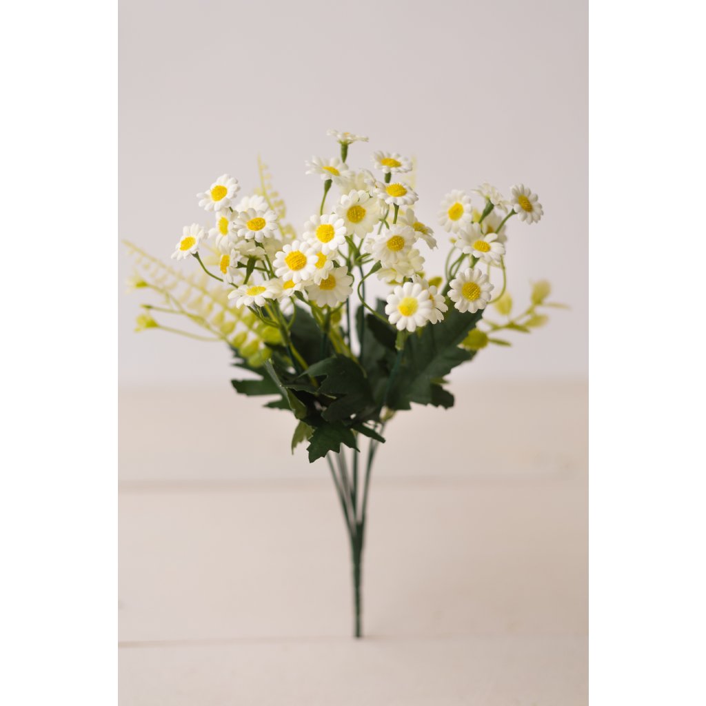 Kytička kamilky s mini kvietkami. Umelá kytička s jemnými kvietkami je ideálnou voľbou pre celoročné dekorovanie. Kytička má výšku približne 35 cm a pozostáva z 5 bohato rozvetvených stopiek, ktoré vytvárajú prirodzený a vzdušný vzhľad. Vďaka kvalitnému spracovaniu je vhodná na rôzne aranžmány – do váz, kvetinových dekorácií, venčekov, stolových ozdôb či sezónnych výzdob. Je ideálna do domácností, kancelárií, prevádzok aj na slávnostné príležitosti. Umelá kvetinka si zachováva svoj vzhľad počas celého roka a nevyžaduje polievanie ani špeciálnu údržbu.