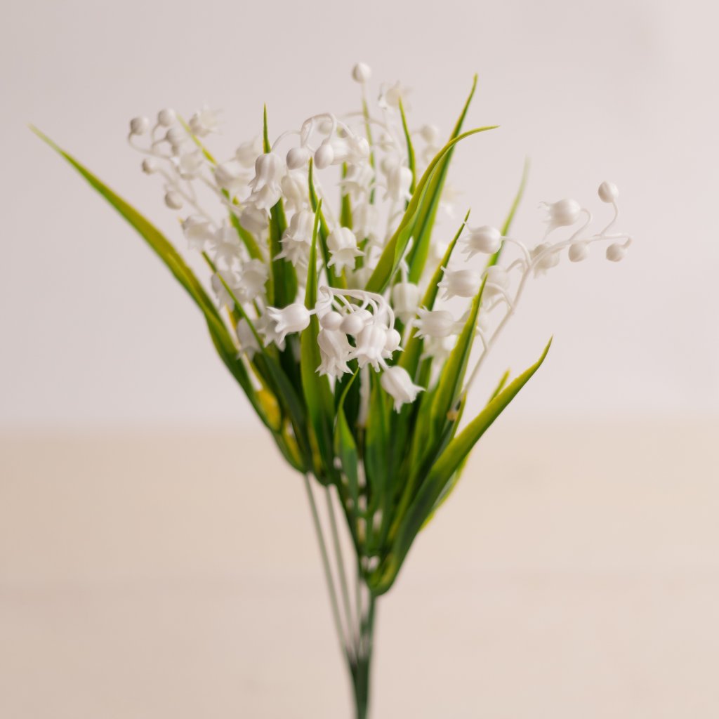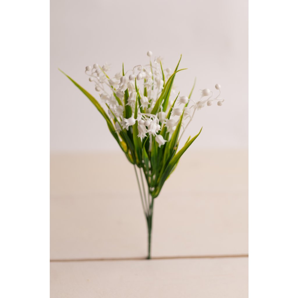 Kytička konvalinky s výškou 35 cm zaujme svojou prirodzenou hustotou a detailným spracovaním. Drobné biele zvončekové kvety sú harmonicky doplnené štíhlymi zelenými listami, pričom jemné poprášenie dodáva aranžmánu realistický, mäkký vzhľad. Kytica pôsobí sviežo a vzdušne, vďaka čomu je ideálna ako jarná dekorácia do vázy, na sviatočný stôl či do výkladov a interiérov ladených v prírodnom alebo romantickom štýle. Nadčasová elegancia konvaliniek prinesie do priestoru pokoj, čistotu a nádych jari.
