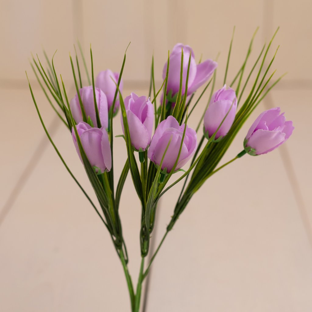35cm kytička krokuskov s klasickým vyhotovením kvietku, 5 stopiek a 10 kvietkov. Perfektný kvietok do jarných venčekov a dekorácií.