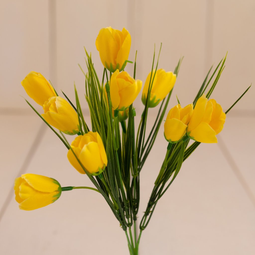 35cm kytička krokuskov s klasickým vyhotovením kvietku, 5 stopiek a 10 kvietkov. Perfektný kvietok do jarných venčekov a dekorácií.