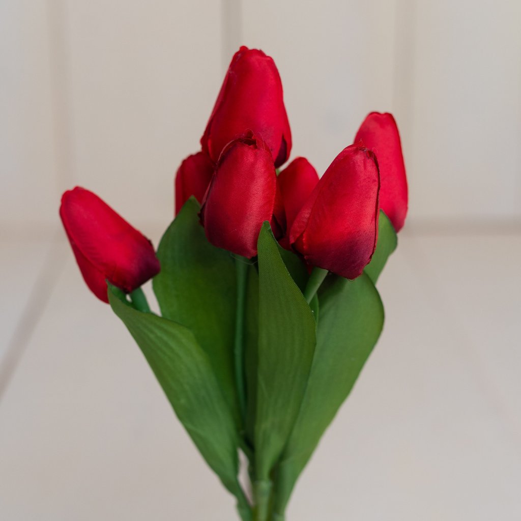 Kytička látkových tulipánov v puku 34cm / 6 stopiek. Perfektný kvietok do jarných venčekov a dekorácií. Jemná látka, kvalitné vyhotovenie.
