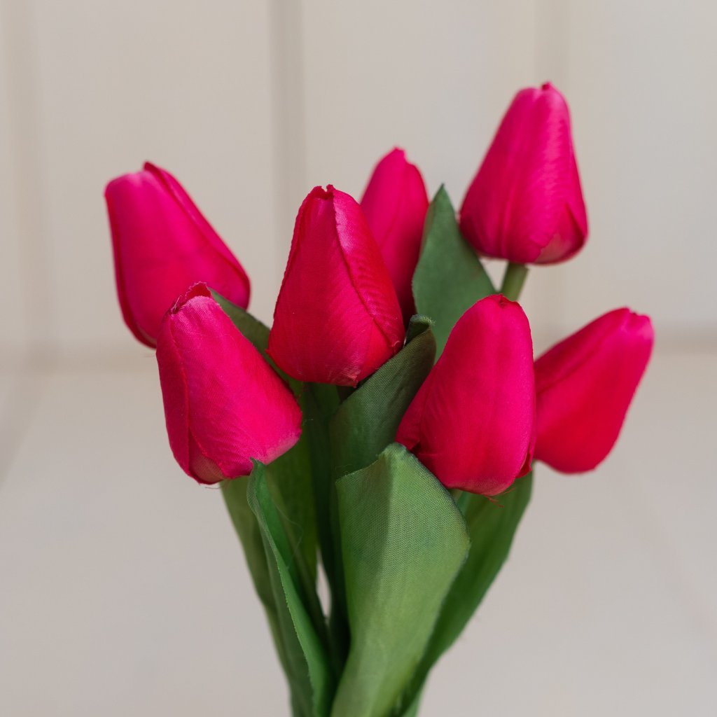 Kytička látkových tulipánov v puku 34cm / 6 stopiek. Perfektný kvietok do jarných venčekov a dekorácií. Jemná látka, kvalitné vyhotovenie.