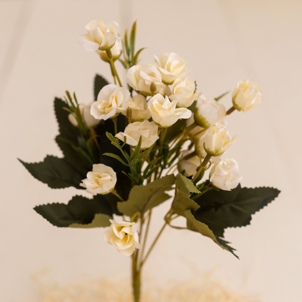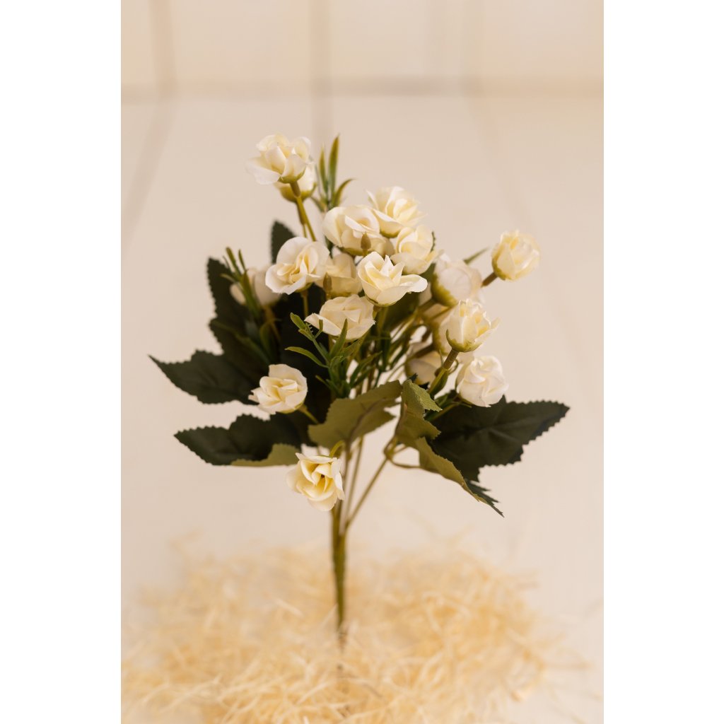 VÝPREDAJ! Kytička mini Ruže v puku KrÉMOVÉ 33cm. Celoročné aranžovanie.