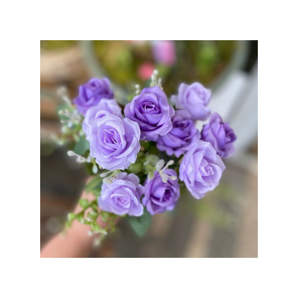 Kytička mini ružičky 33cm s 5 stopkami, na ktorých je 10 kvietkov. Priemer kvietku 3,5-4cm.