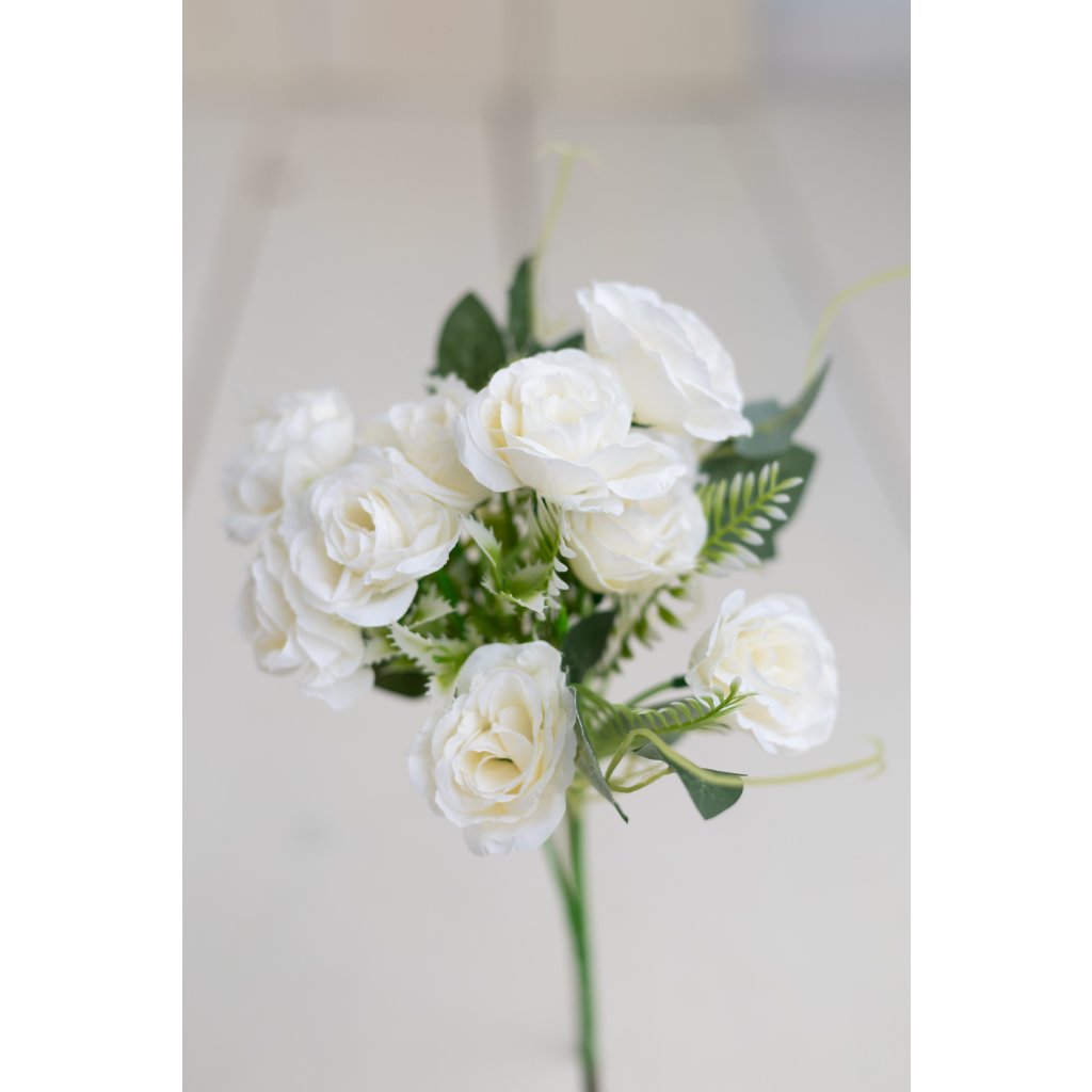 Jemná a elegantná kytička ružičiek s plošejšími hlavičkami je ideálnym doplnkom do celoročných dekorácií. Púdrové modré kvety pôsobia prirodzene a romanticky, sú doplnené zelenými lístkami, ktoré dodávajú aranžmánu svieži a vyvážený vzhľad. Vďaka svojej univerzálnosti je vhodná do vencov, kvetinových aranžmánov, ikebán, dekorácií do interiéru aj na slávnostné príležitosti. Krásne sa kombinuje s inými umelými kvetmi a zeleňou a prinesie do dekorácie jemnosť a eleganciu počas celého roka.