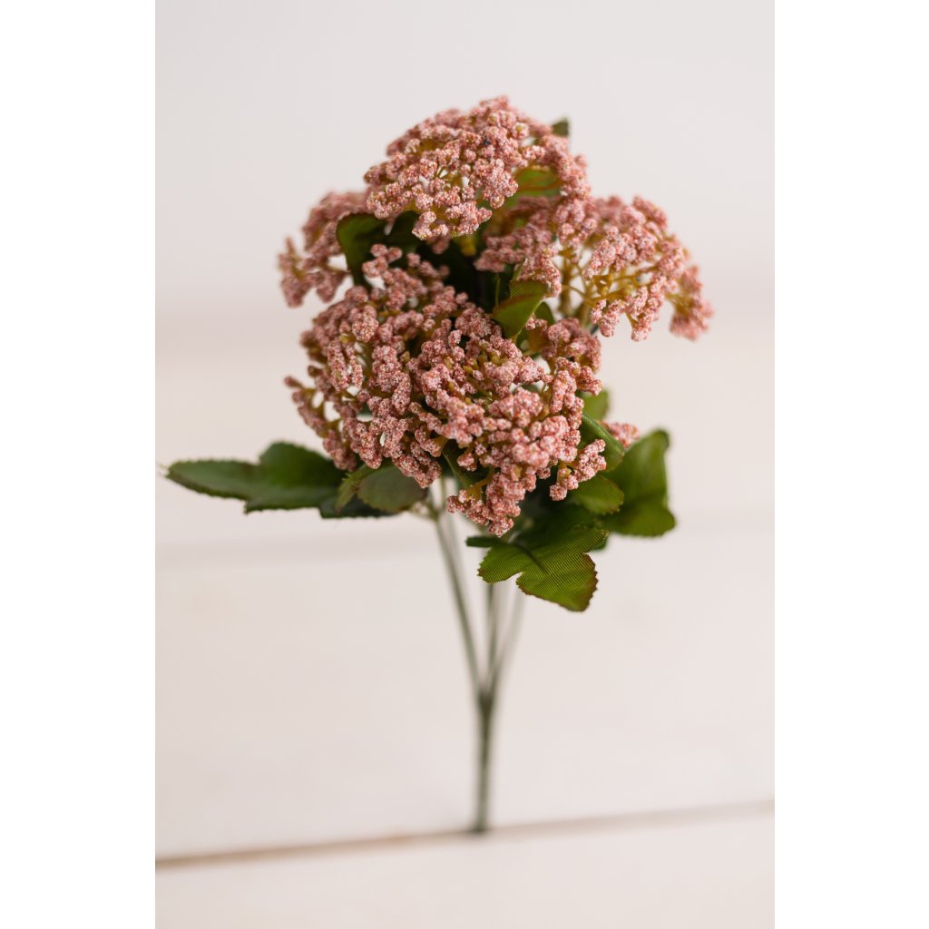 Dekoratívna kytica – prízdoba je ideálnym doplnkom pre tvorbu aranžmánov, vencov a interiérových dekorácií. Tvorí ju 5 pevných stopiek s bohatým drobným kvetenstvom v prírodných zemitých tónoch, ktoré pôsobia elegantne a realisticky. Vďaka výške 35 cm sa ľahko kombinuje s inými dekoratívnymi prvkami a je vhodná do sezónnych aj celoročných aranžmánov. Nevyžaduje žiadnu starostlivosť a zachováva si svoj vzhľad dlhodobo, čo z nej robí praktickú a estetickú voľbu pre každý interiér.