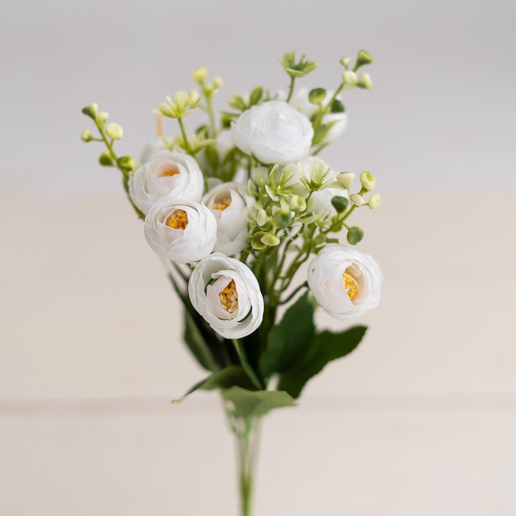 Kytička Ranunculus a prizdoby BIELA 30cm